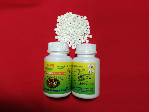 我公司研發生產的“十倍鮮”牌“梨保鮮劑(片劑)” 其有效成分為1-甲基環丙烯(1-MCP), (1-MCP)對黃冠梨、貴妃梨(油瓶梨)等梨類保鮮效果顯著。能有效控制梨采摘后的各種生理生化反應,包括控制乙烯的釋放和呼吸強度等,抑制內源乙烯和外源乙烯對梨的催熟作用,降低多酚氧化酶、纖維素酶和過氧化酶的活性,減緩梨的成熟衰老進度,延長貯藏期和貨架期,同時較好地保持果實的外觀品質、風味、硬度和營養成份。